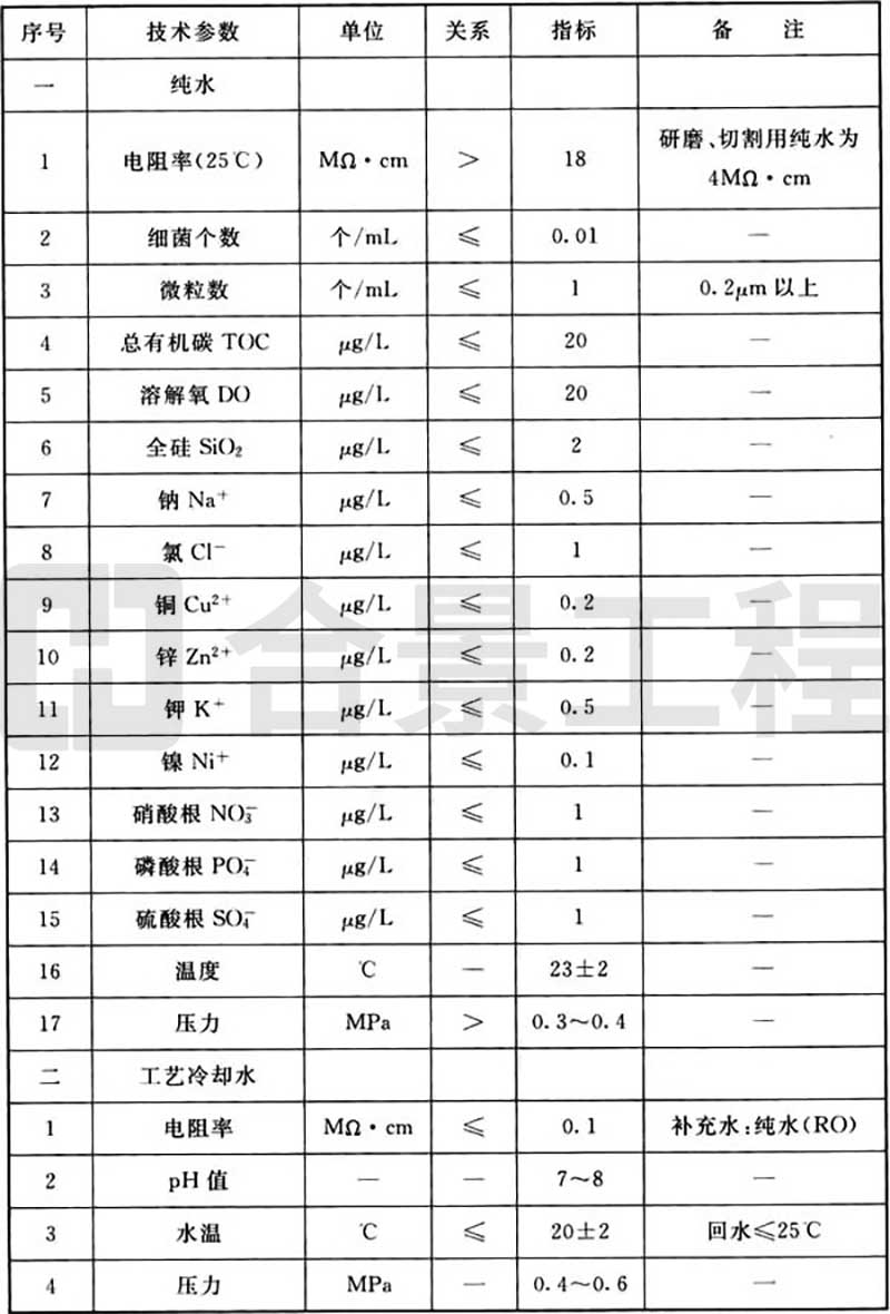 表B.0.2 工藝動(dòng)力品質(zhì)(水)要求